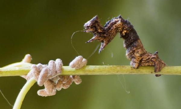 Всё ещё живая гусеница ведёт себя так, будто личинки до сих пор контролируют её поведение. Вместо того чтобы продолжить своё мирное существование (пойти поесть, например), пяденица остаётся на месте и выгибается дугой над коконом, охраняя его от посягательств со стороны.